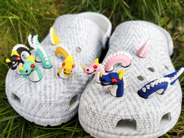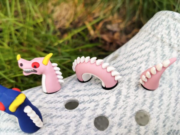 Unleash your inner fire with these bold and playful dragon shoe charms! Each dragon is a complete 3-piece set featuring a head, arched body, and tail — designed to span across your clog holes for a dynamic, mythical look. Choose from vibrant colors like teal, black, yellow, pink, and blue.
